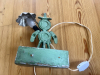 Eiserner Jäger mit Hut, Lampe als Gewehr, Marke Eigenbau mit Hammerschlaglackierung, Scherzfigur aus den 50 er Jahren...