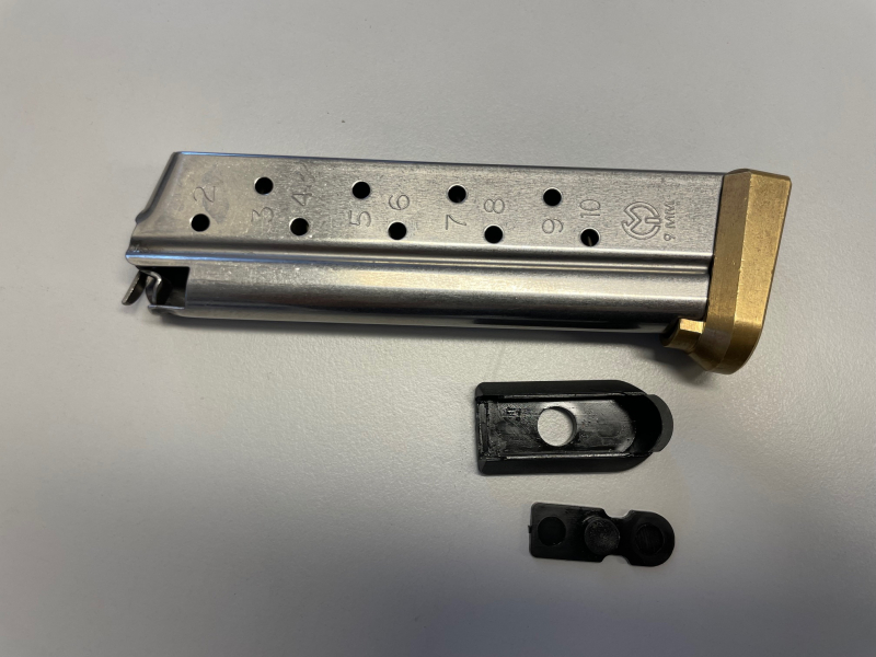Magazin inkl. Original Base Plate und Federplatte und Messing Magazinboden mit Messing Federplatte.