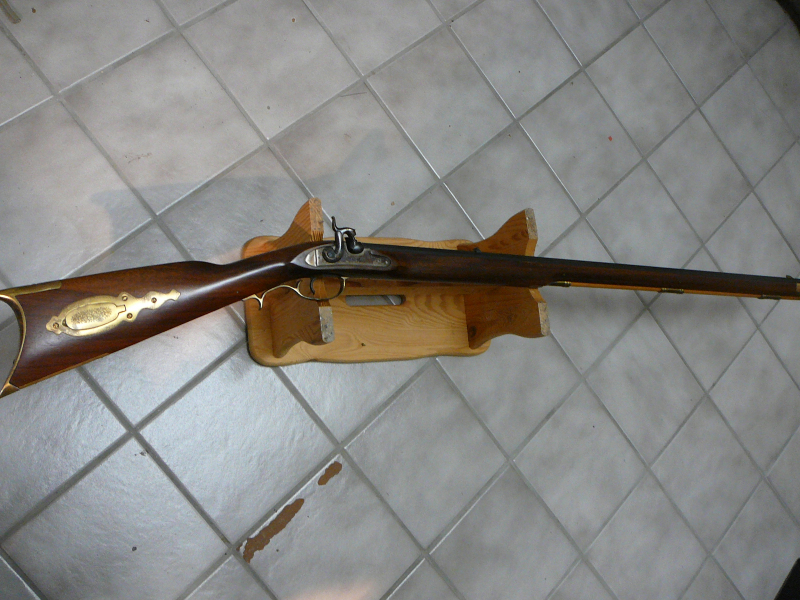 Perkusionsgewehr Army Jäger cal. 44 AV mit Patch Box. Das Gewehr ist 128cm und der Lauf ist 89cm lang. Gezogener 8 Kantlauf.