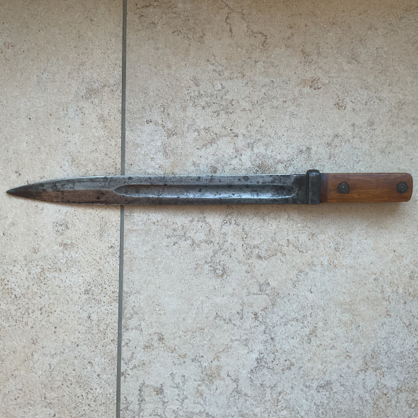 Hallo, biete das hier abgebildete alte Bajonett ohne Scheide zur Auktion an. Der Griff wurde umgearbeitet. Originalschrauben noch vorhanden.