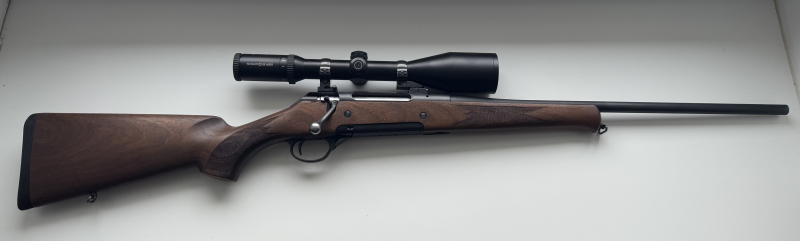Mit dazu gibt es: - ein Zielfernrohr von Schmidt und Bender "Klassik 2,5-10 x 56" - ein Rotpunktvisier von Docter Sight - Munition
