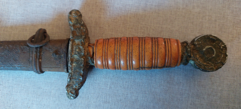 Starke Gebrauchsspuren. Mit Scheide. Zustand siehe Bilder. Kann leider keinen genaueren Angaben geben. Kenn mich damit nicht so recht aus.