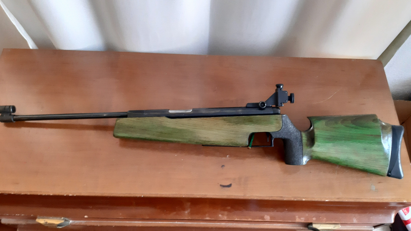 Es ist ein Seitenspanner Luftgewehr Feinwerkbau 300s Junior mit einer Gesamtlänge von 99 cm im Kaliber 4,5 mm / .177.