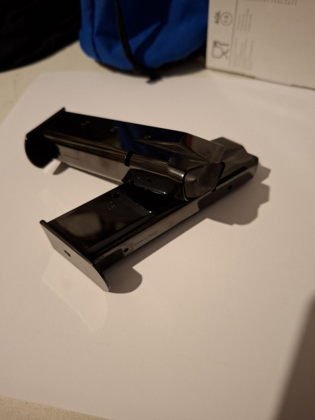 Zum Verkauf stehen zwei absolut wenig gebrauchte Magazine, daher Zustand als neuwertig bezeichnet, der Marke MECGAR für die SIG 226 in 9mm Luger. Preis für beide Magazine zusammen 45,00 Euro.  KEIN Einzelverkauf.