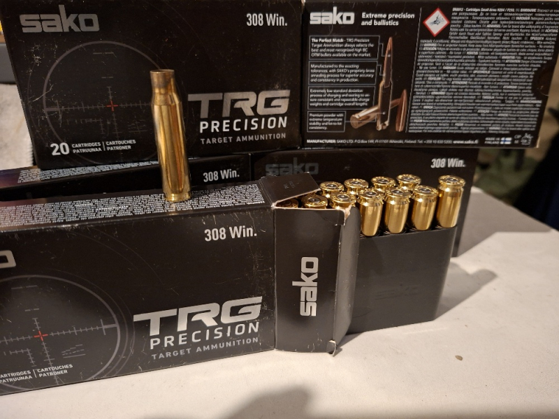Zum Verkauf stehen hier 10 Päckchen à 20 Hülsen der Marke SAKO, Typ TRG Precision in .308 WIN, ehemals ausgestattet mit einem 175 grs. BTHP OTM-Scenar-L Geschoss. Die Hülsen sind je 1x abgefeuert aus einem SAKO TRG 22. Von den 10 Päckchen stammen 8 aus einem Los, die übrigen 2 sind ein anderes Los, aber die beiden untereinander auch gleiches Los. Ich bin kein Wiederlader, daher Verkauf an andere zu diesem Zweck. Der Kaufpreis für alle 10 Schachteln zusammen sind 95,00 Euro.