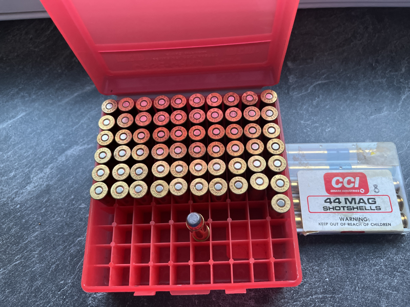 Ich biete aus einem Nachlass 62 Patronen 44. Mag. TM und 10 Stk. 44.Mag. Schrot in einer Munibox von MTM. Die Patronen wurden stets trocken gelagert. Privatverkauf. Keine Rücknahme
