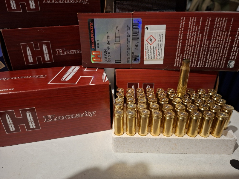 Zum Verkauf stehen hier 5 Päckchen à 50 Hülsen der Marke HORNADY in .308 WIN, ehemals ausgestattet mit einem 168 grs. BTHP Match Geschoss. Die Hülsen sind je 1x abgefeuert aus einem SAKO TRG 22. Ich bin kein Wiederlader, daher Verkauf an andere zu diesem Zweck.