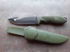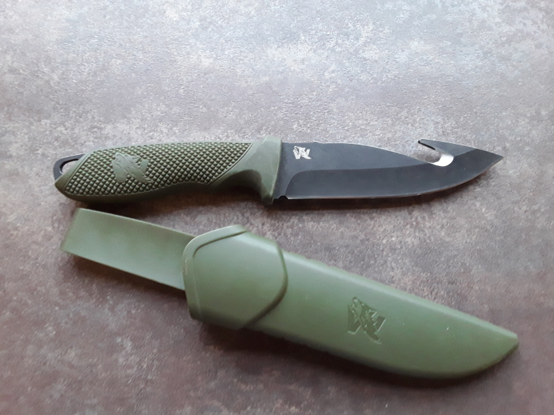 Verkaufe aus Sammlung neuwertiges Messer von Odenwolf. Modell Hunter aus strazierfähigen D2 Stahl, PP Scheide 42a konform, mit nützlichem Anreishaken. Ausführung in Olive mit stonewashed Klinge und einem Struckturgriff für eine super Handlage.