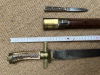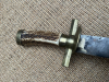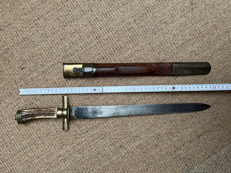 Aus Sammlungsauflösung wird ein alter Hirschfänger mit lederner Scheide und Beimesser angeboten. Die 37 cm lange Klinge ist bis auf das obere Ende (siehe Fotos) in ordentlichem Zustand. Sämtliche Beschläge scheinen aus Messing gefertigt zu sein. Das Stichblatt, Parierstange und Horngriff sitzen etwas wacklig auf der Klinge. Insgesamt aber noch ein solides Messer. Die Scheide mit intakter Naht ist in ordentlichem Zustand, der untere Beschlag ist nachgelötet. Das Beimesser passt gut, ist aber evtl. nicht ursprünglich zugehörig. Der Verkauf dieses gebrauchten Artikels erfolgt von Privat unter Ausschluss jeglicher Gewährleistung, Garantie, Sachmängelhaftung und Rückgabemöglichkeit. SHIPPING ONLY TO DESTINATIONS INSIDE EU!