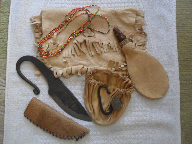 Biete für die nächste Saison Trapperzubehör an. Dies besteht aus einem Messer zum Feuer schlagen, einem Feuerschläger mit Pyrit, einem Kugelbeutel für cal.45, einer Tasche und eine Perlenkette (siehe Foto).