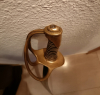Klinge ist blank ohne Rost, lediglich leicht gedunkelt und ohne Knick. Griffleder möglicherweise in alter Zeit erneuert (s. Fotos)