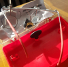 Der rote Bezug der Haltebügel weist einige poröse Stellen auf (siehe Bilder).