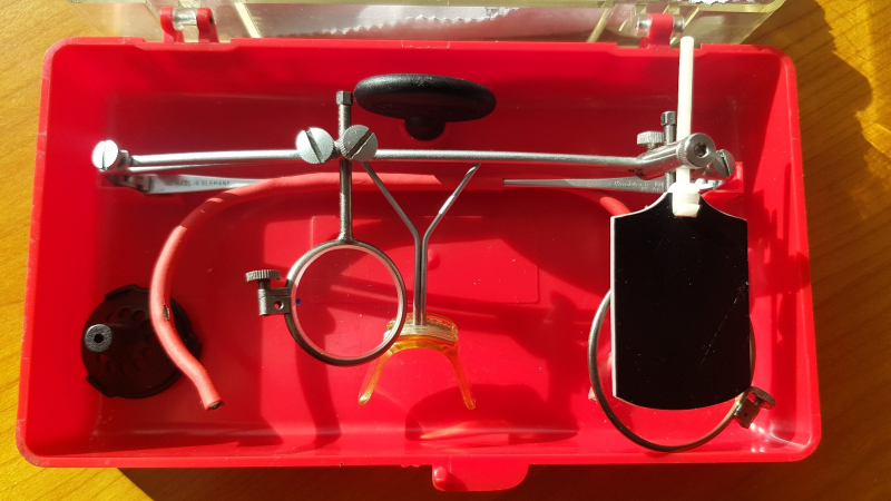 Geliefert wird die Brille in der Transportdose komplett mit Montagewerkzeug und einem Justiertrichter.