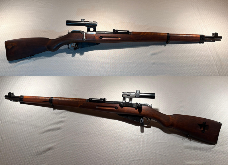 Die begehrtesten Modelle der Nagant-Baureihe aus kompletter Eigenfertigung der Finnen gekennzeichnet durch hervorragende Verarbeitungsqualität im Vergleich zu den Russen. Der dicke Lauf sowie die Schaftausführung mit Pistolengriff, der feine Abzug sowie die Visierung machen diese Gewehre besonders beliebt bei Ordonnanzschützen.