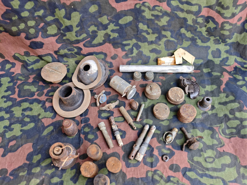 WW1- und WW2-Mix: BZE- und ANZ-Zünder, Teile für 10-cm Hl-Granate, Panzerschreck-Munitionsteile sowie Zünder von WW1-Eierhandgranaten und Kugelhandgranaten. Versand innerhalb der EU.“