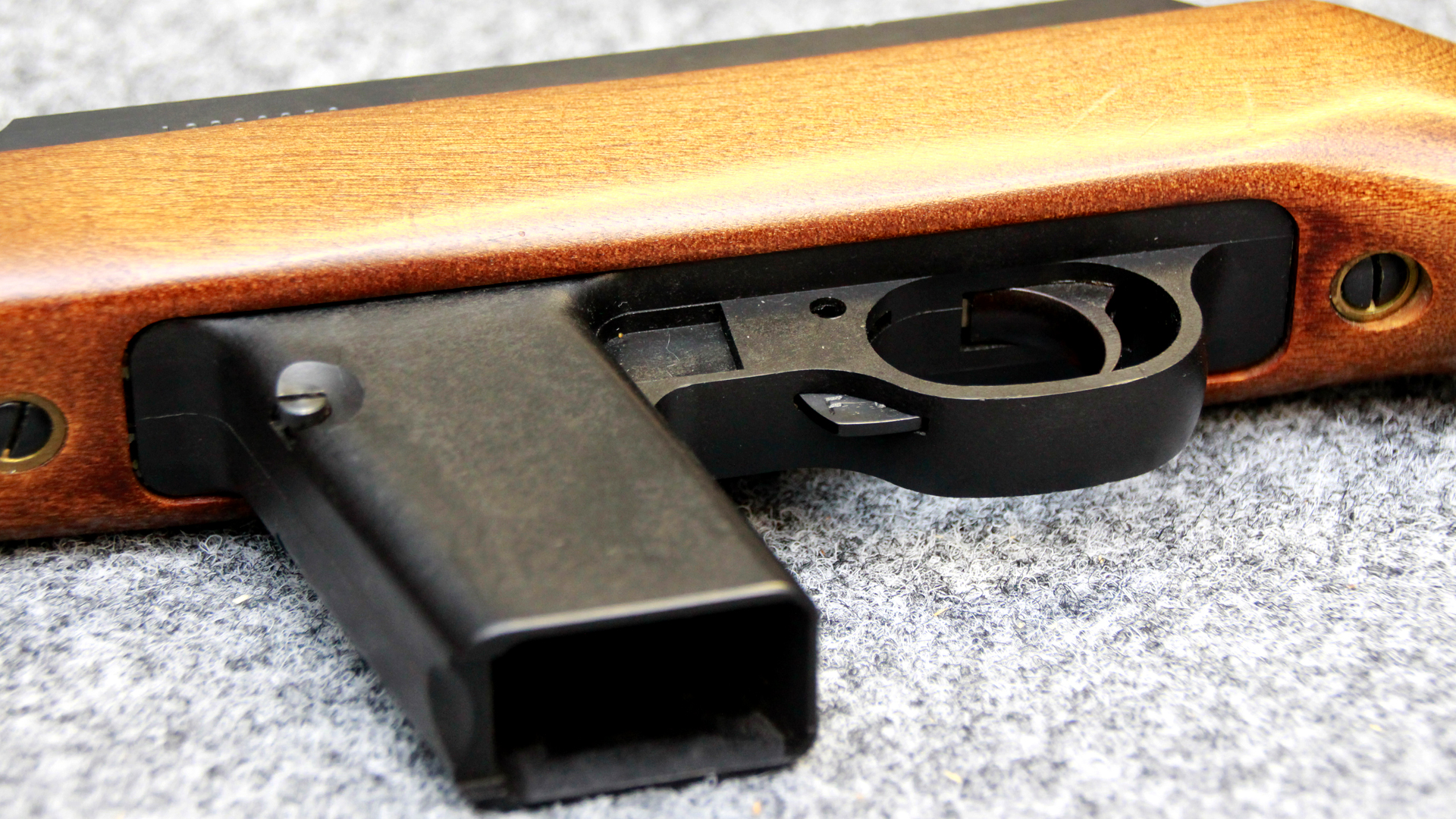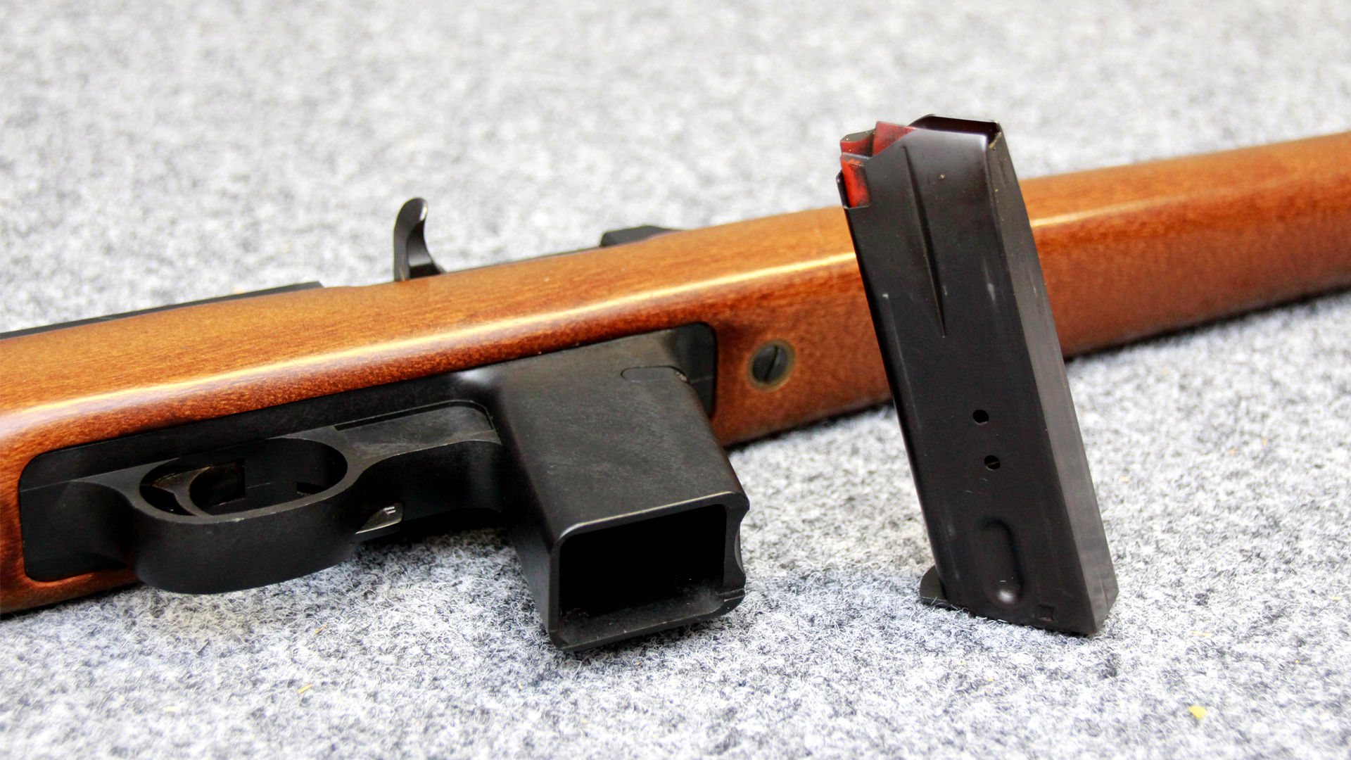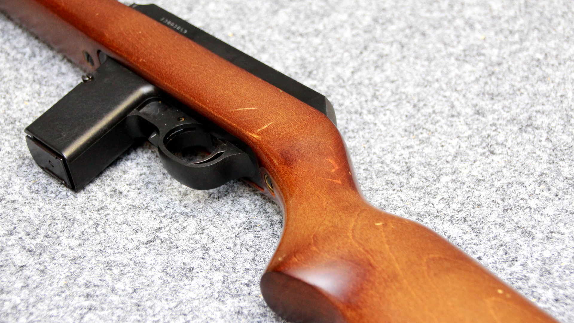 Außerdem verfügt die Marlin Model 9 über einen zuverlässigen Masseverschluss (Blowback) und eine solide Stahlbauweise mit Holzschaft.