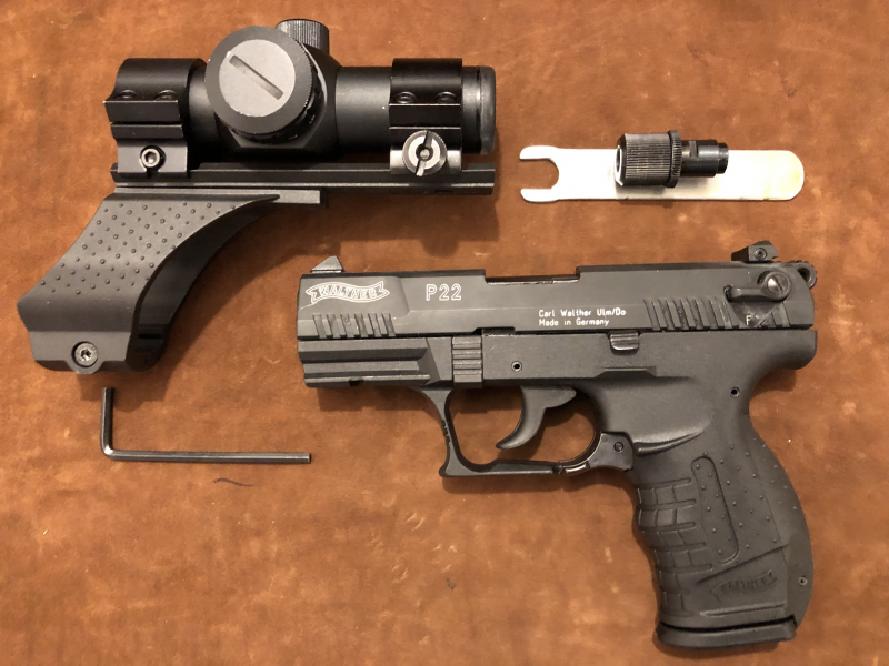 Im Auftrag eines Kunden: ++++++ Schrankwaffe, Pistole Walther P22 mit folgendem Zubehör: ++++ Gebrauchsanleitung, Brückenmontage mit Walther TopPoint Rotpunktvisier inkl. neuer Batterie. Mündungsadapterschraube ½“ UNF. 2 Werkzeuge für die Brückenmontage und den Mündungsadapter. Bedienungsanleitung +++++ Technisch einwandfrei, Lauf und Patronenlager sind spiegelblank. Sehr guter Zustand, siehe Fotos.+++ Der Schlüssel für die Abzugssperre fehlt, die Sperre ist ausgeschaltet! ++++ Es wird geliefert, was auf den Fotos zu sehen ist. +++++++++++++++++ Im Kundenauftrag, daher keine Garantie, Umtausch oder Rücknahme. ++++Versand nur mit Overnite, 39,00 Euro. +++ Der Anliefertag muss telefonisch vereinbart werden!!!!! +++++ Kein Versand ins Ausland!!! No EXPORT!!+++++++++Export nur über deutschen Exporteur! Export only with your own German Exporter !!! Shippingcost to your German Exporter 39,00 Euro!!+++++++++++