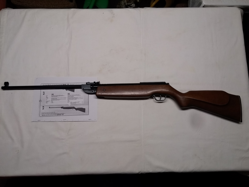 Biete aus meiner Sammlung ein selten angebotenes Knicklaufluftgewehr Mod. Haenel 110. Es befindet sich in einem kompletten, funktionstüchtigen,