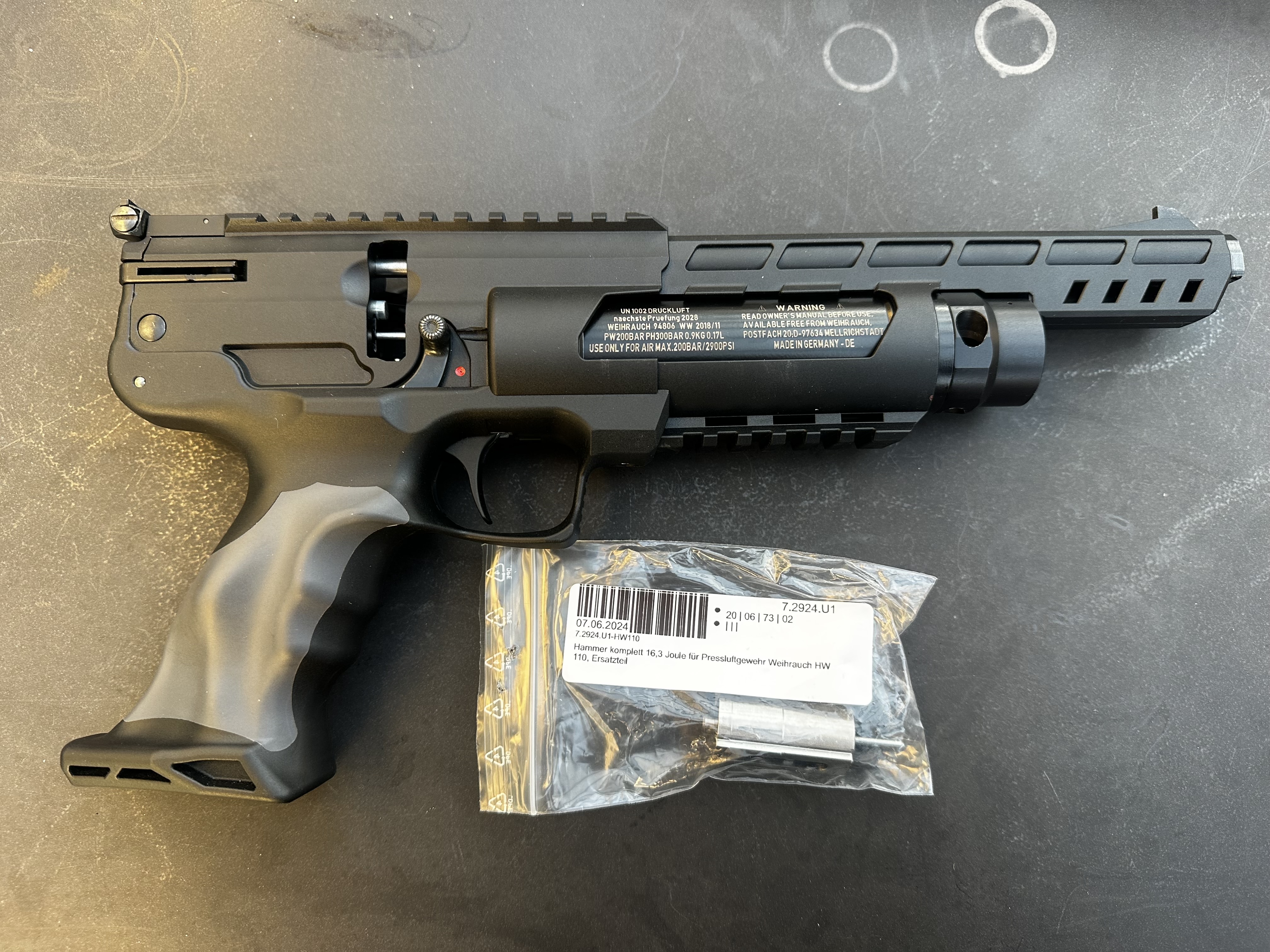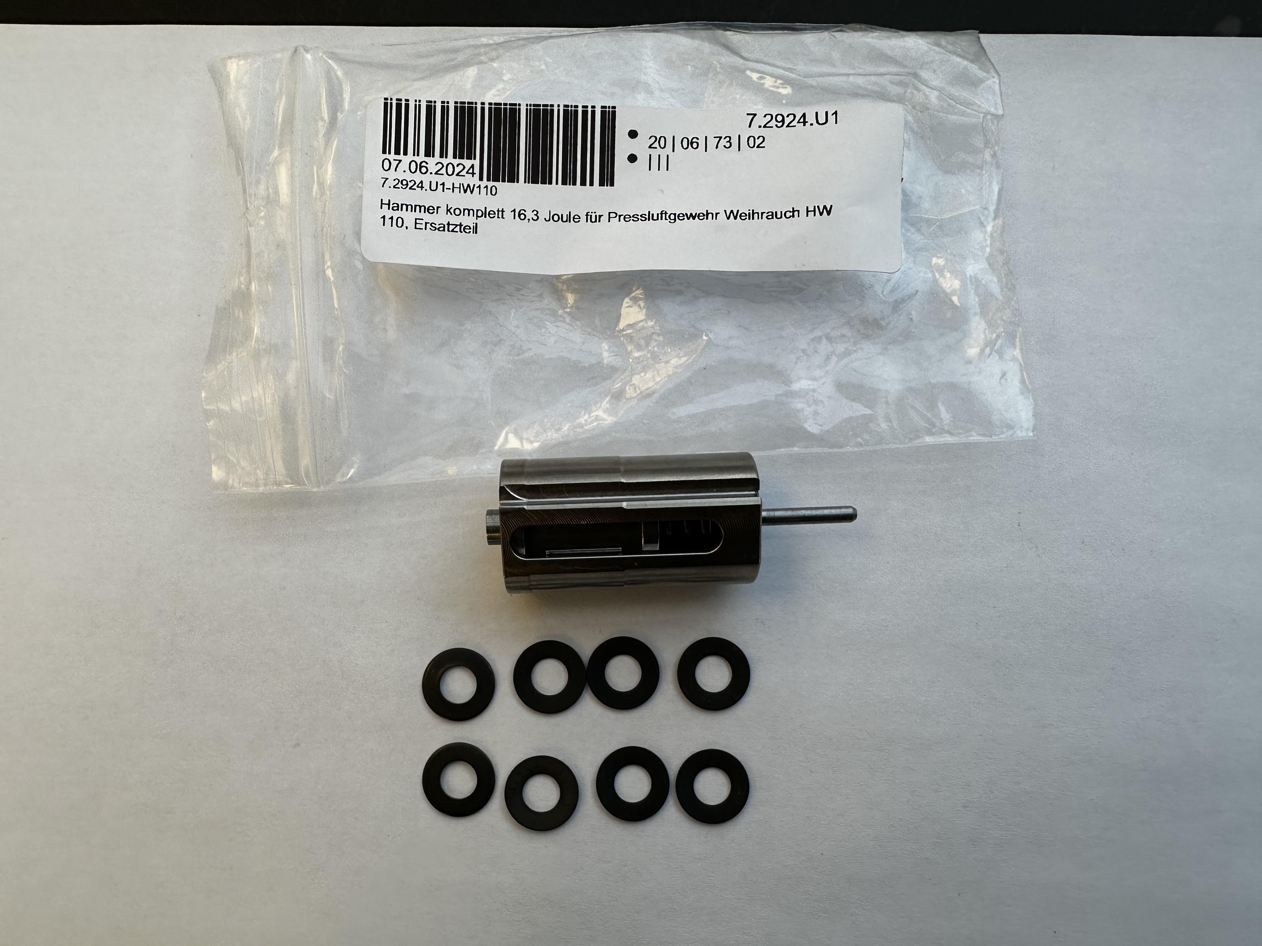 Des weiteren ist ein Exporthammer und 8 Export Tellerfedern mit dabei, mit denen man die Leistung der Pistole auf 16 Joule anheben kann.