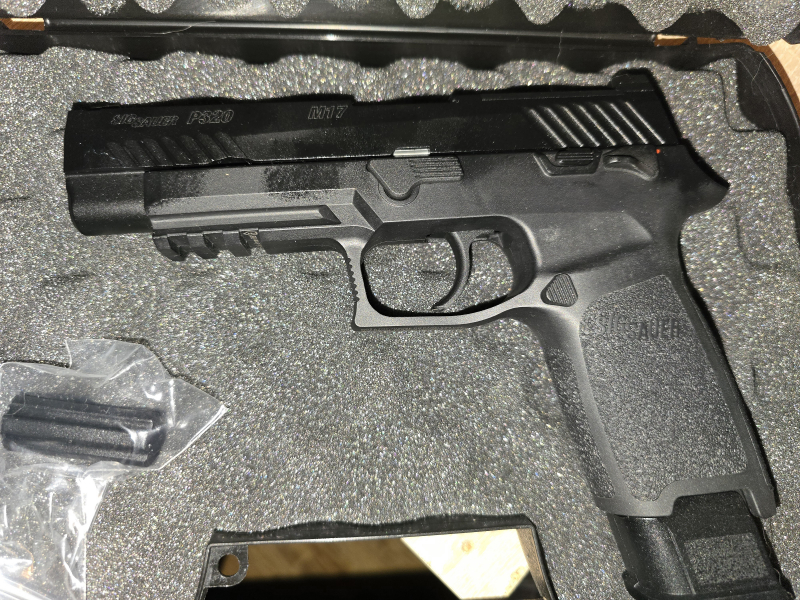 Hallo, biete hier eine Sig Sauer M17, 6mmBB, Gas an, in schwarz. Die waffe hat Blowback, hat keine gebrauchspuren, waffe ist aus Metall mit polymer body. Mit dabei ein Waffenkoffer. Was aussieht wie Flecken auf der waffe sind nur Öl Spuren von der Pflege.