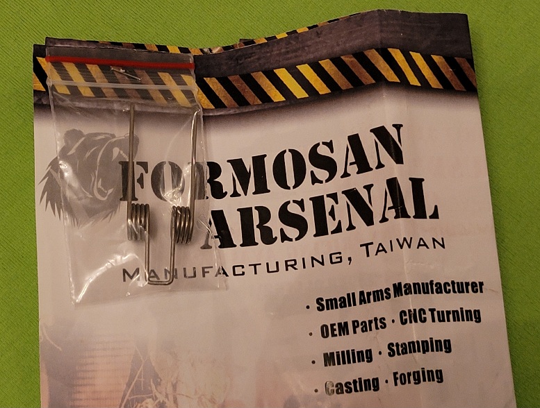 Hahnfeder bzw. Hammerfeder für AR-15 und M16. Hersteller Formosan Arsenal aus Taiwan. Versicherter Versand mit Sendungsverfolgung. Auf Wunsch auch ohne = günstiger.