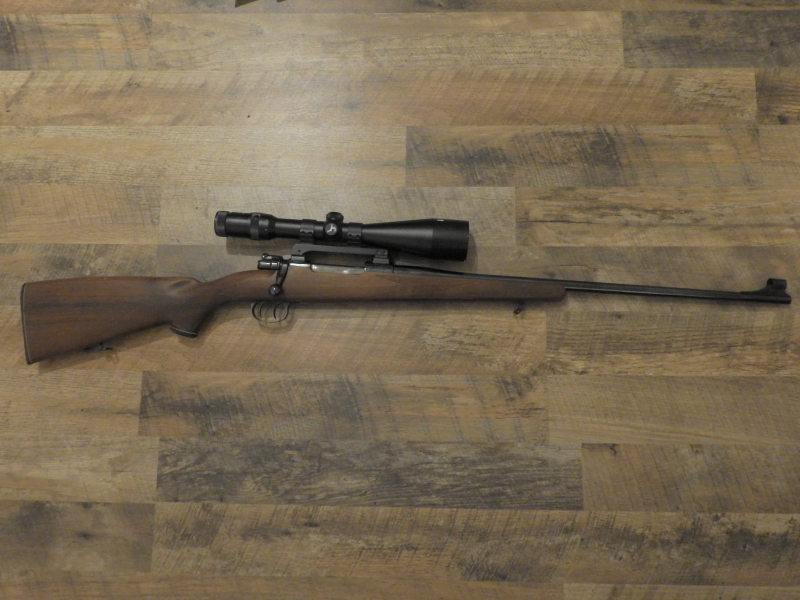 Zum Verkauf steht eine Repetierbüchse System 98 im Kal. 8x57 JS , Flügelsicherung, Deutscher Stecher, Auf einer Schwenkmontage ist ein ZF Docter-Frankonia 3-12x56, Abs. 1. montiert. Schaftholz mit geringen Gebrauchsspuren, Brünierung Super.