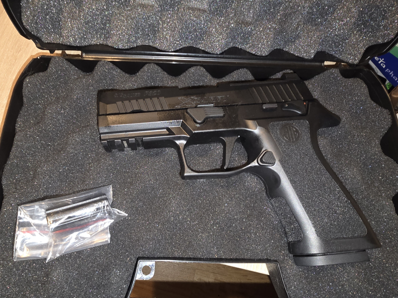 Hallo, biete hier eine Sig Sauer P320 x-carry, 6mmBB, Gas an, in schwarz. Die waffe hat Blowback, hat keine gebrauchspuren, waffe ist aus Metall mit polymer body. Mit dabei ein Waffenkoffer. Was aussieht wie Flecken auf der waffe sind nur Öl Spuren von der Pflege.