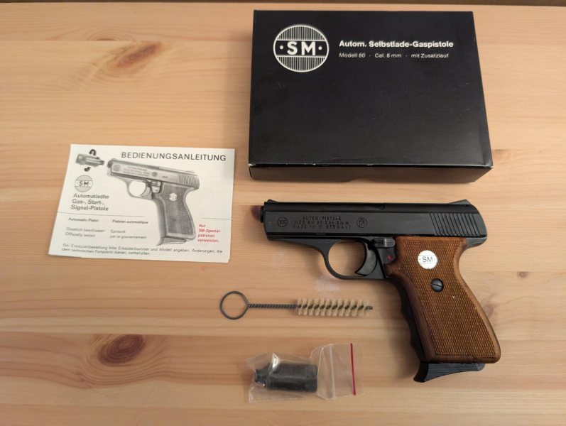 Zum Verkauf steht ein echter Klassiker der deutschen Schreckschuss-Historie: Eine SM Modell 80 im Kaliber 8mm Knall aus der renommierten Sportwaffenfabrik Rhöner (SM). Die Pistole besticht durch ihre kompakte Bauweise und die hochwertige Verarbeitung "Made in W. Germany".
