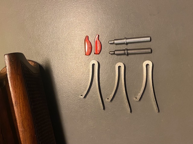 Sie bieten auf ein seltenes Konvolut von 2 Schlagbolzen, 3 Plattfedern und 2 Kornen einer Beretta SO5 - alles original Beretta!