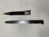 Bajonett Dänemark für das Krag Jörgensen Gewehr Mod. 1889. Hergestellt in Dänemark bei Haerens Tojhus. Klingenlänge 23 cm, Gesamtlänge 34,5 cm. Das Bajonett und die Lederscheide sind in einem guten gebrauchten Zustand, die Nähte sind fest und im Originalen Zustand, nichts ist