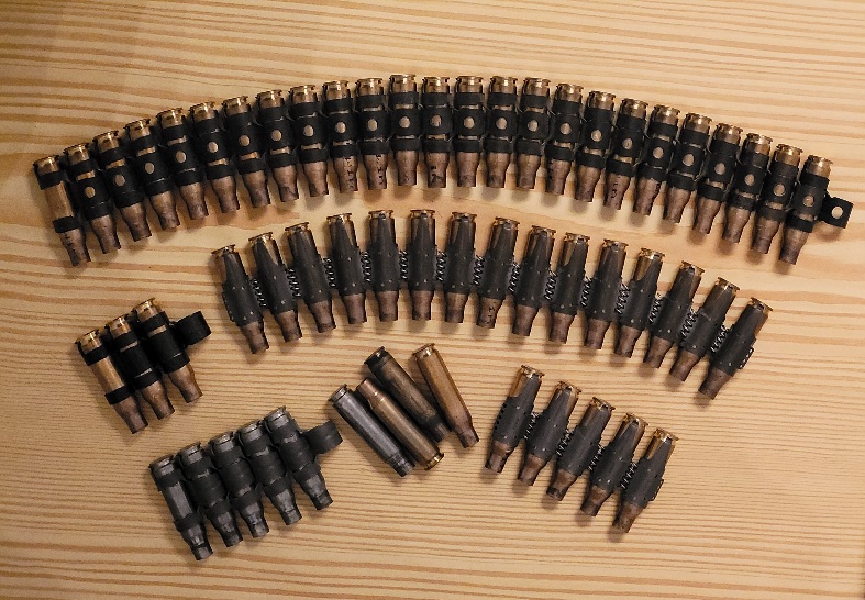 Konvolut militärische Hülsen Kaliber .308 Winchester bzw. 7,62x51mm NATO. Mehrheitlich auf Maschinengewehrgurten der Modelle DM1 und M13/DM60. Siehe Bilder.