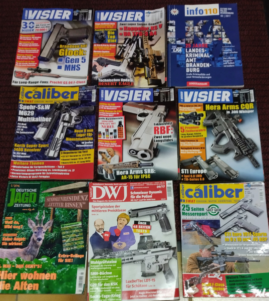 Zeitschriften der Jahrgänge 2016 -2017, Visier, Caliber, DWJ, ... Jagd - alles in gutem gebrauchten Zustand.