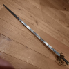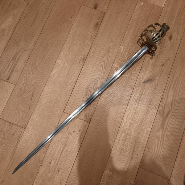 Modell 1756 103cm lang, ohne Scheide im original Zustand seit über 60 Jahren in der Sammlung zu versteigen. DHL Paket 15 Euro Versand oder Abholung. Es sind keine Stempelungen auf der Klinge zu sehen, wohlmöglich auf der Angel, da das Stück noch nicht geöffnet wurde ist dieses nicht ersichtlich. Die klingenbreite beträgt ca.9 mm zum Gefäß. Versand in die Niederlande ist möglich.