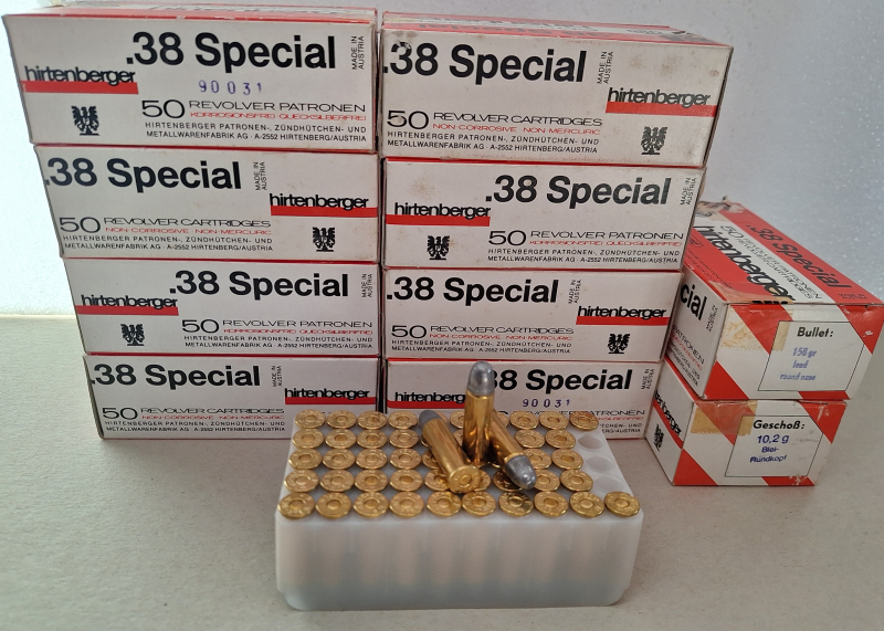 Zum Verkauf stehen 500 Hirtenberger .38 Special, 158gr/10,2g Blei-Rundkopf Patronen.