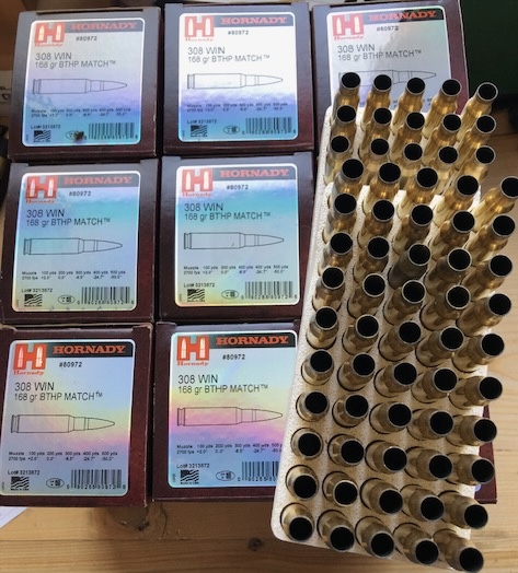 Hier steigern sie auf min. 500 Hülsen Hornady BTHP Match 168 grain.