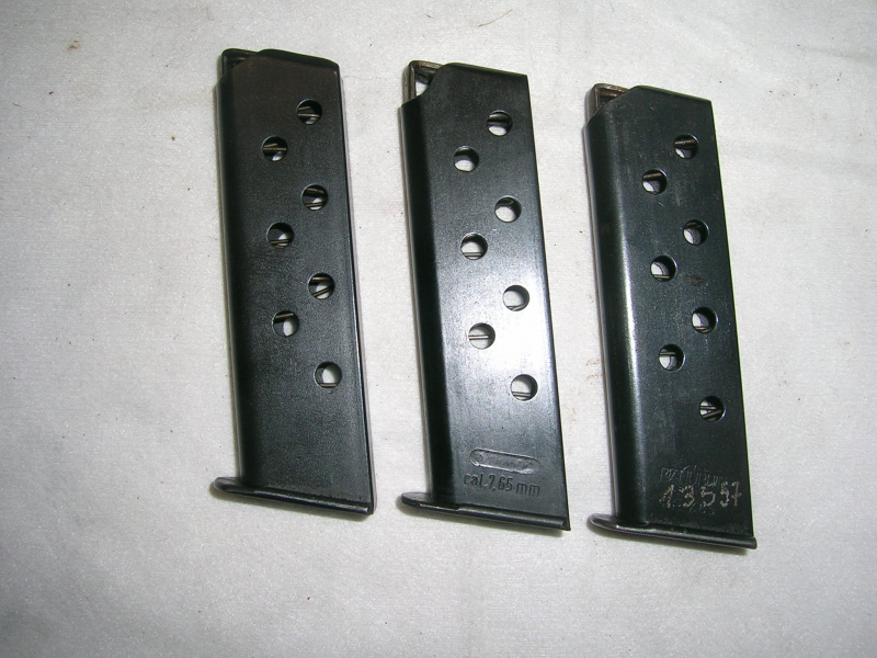 Biete drei gut erhaltene und funktionstüchtige Magazine für die Pistole Walther PP im Kaliber 7,65mm Browning. Ein Magazin weist keine Beschriftung auf. Beim mittleren Magazin wurde die "Walther-Schleife" entfernt (vermutlich in der ehemaligen DDR). Das rechte Magazin gehört zu einer Pistole Manurhin, einer französischen Lizenzfertigung der Walther PP. Eine Sachmängelhaftung schließe ich aus. Viel Erfolg!
