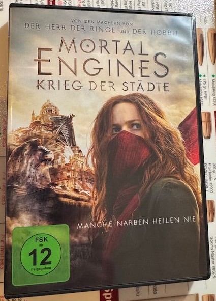Zum Verkauf steht die DVD „Mortal Engines“ – ein spannender Science-Fiction-Film mit beeindruckender Welt und actionreicher Story.