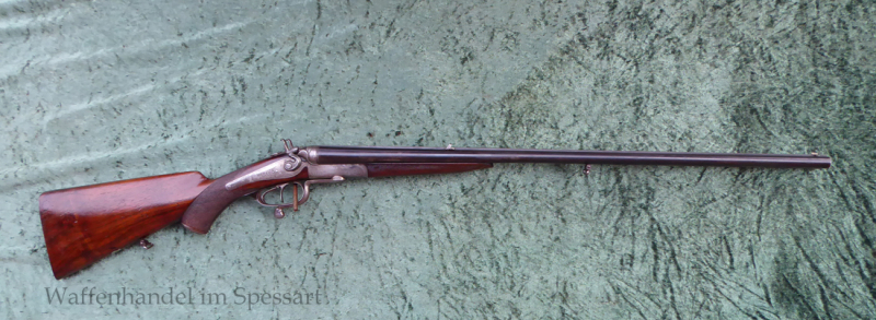 Verkäufer H.C.G. Stein in Hamburg. Kal.11,15x60RM71 und 16/65. Ser.Nr. ohne. V Beschuß, also von 1891 gefertigt. Der Schrotlauf ist aus echtem Damaststahl. Das Laufinnere hat das klassische Bleiprofil. Sehr gute erhabene Felder und Züge. Der Kugellauf und der Schrotlauf sind blank. Der Verschluß ist wirklich stramm und dicht. Wertige Seitenschlosse mit dezenter Arabeskengravur die aus auf der Basküke und am Verschlußhebel vorzufinden ist.