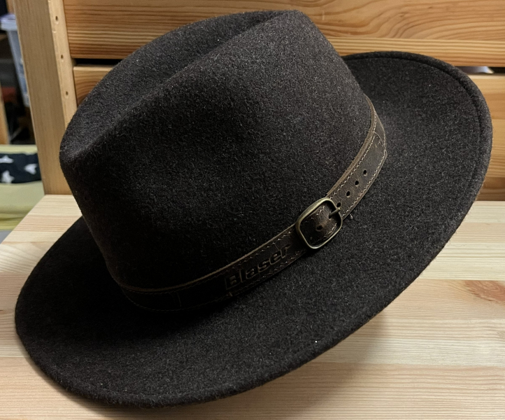 1x Hut Travaller Blaser, braun, mit Lederhutband, Größe 57.
