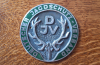 Angeboten wird eine DJV-Kühlerplakette in alter Ausführung, vermutlich aus Zink-Druckguss, mit 75 mm Durchmesser und 5 mm Stärke.