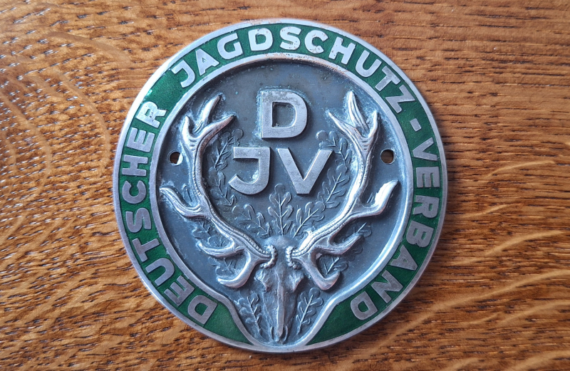 Die vordere Oberfläche trägt noch den Schriftzug DEUTSCHER JAGDSCHUTZ-VERBAND; heute heißt dieser nur noch Deutscher Jagdverband.