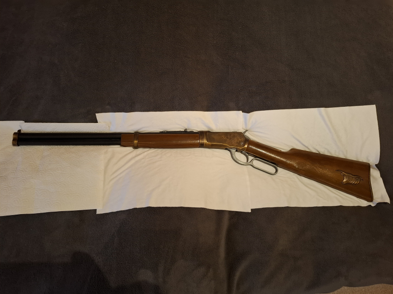 Hallo, hier biete ich ein sehr schönes 1:1 Deko Winchester Gewehr aus dem Nachlass meines verstorbenen Vaters. Diese ist neuwertig, hin in einer Vitrine als Modell und besteht aus Holt und Metall teilen, lässt sich wie das original spannen, abschlagen, Patronen Auswurf ist ebenfalls beweglich, große Mündung offen. Das Gewehr ist knapp 1 Meter lang, exakt gemessen 98 cm. Ein Muss für jeden Fan. Bei Fragen einfach mailen. Versand erfolgt in großem Karton.