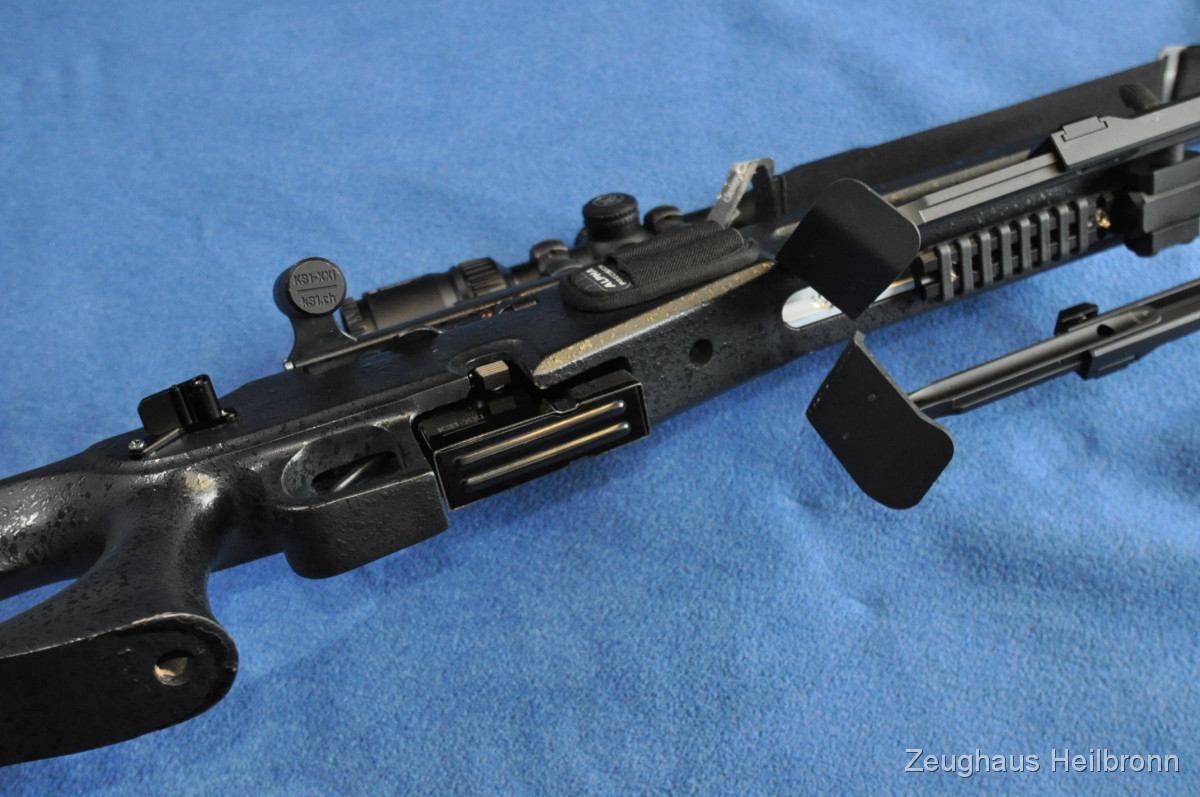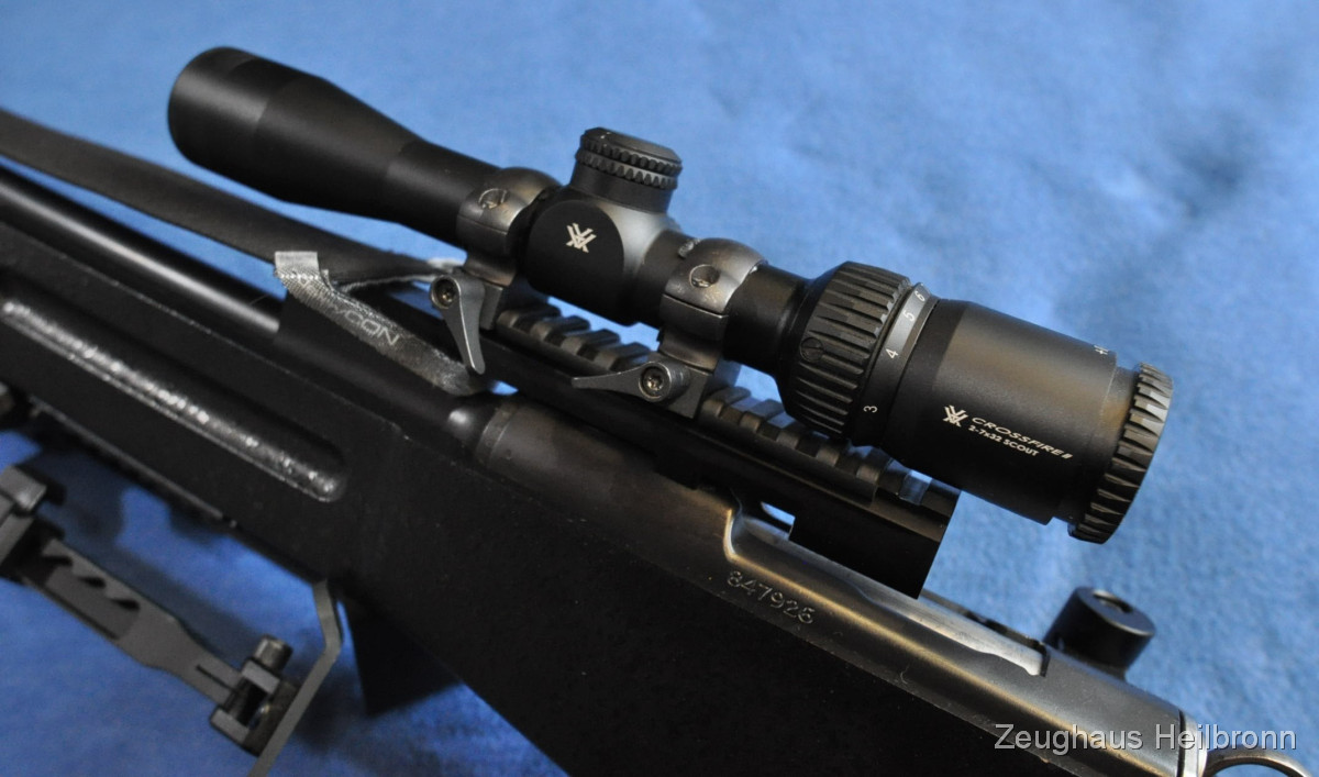 Waffe in einem sehr schönen Zustand, siehe Bilder, Lauf blank, volle mechanische Funktion. Mit Matchschaft, massivem Zweibein (kostet alleine 250 EUR), Mündungsfeuerdämpfer, grosser Durchladehebel, Flimmerband, ZF Crossfire Scout 2-7x32. Absehen Fadenkreuz. Alle Modifikationen sind Rückbaubar, es gibt keine zusätzlichen Bohrungen o.ä. an der Waffe. Mit 10 Schuss Magazin. Standart 5 Schuss passen auch.