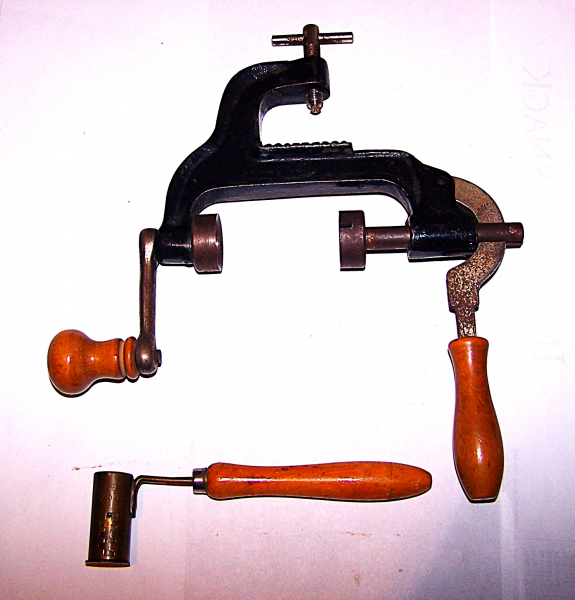 Ein schönes Rändelgerät für 16er Schrot mit Messbecher für Pulver und Schrot.