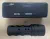 HERA ARMS CC Kompensator M15x1 (Kaliber .223 Rem. bis .308 Winchester). Dazu gibt es einen Quetschring und drei unterschiedlich dicke Unterlegringe. Bei vielen Disziplinen ist dieser Kompensator zugelassen, da die Gase im 90 Grad-Winkel abgeleitet werden, zusätzlich befinden sich oben Entlastungsbohrungen, damit die Waffe nicht hochspringt. Der Kompensator wurde in mehreren Schritten nachbrüniert.