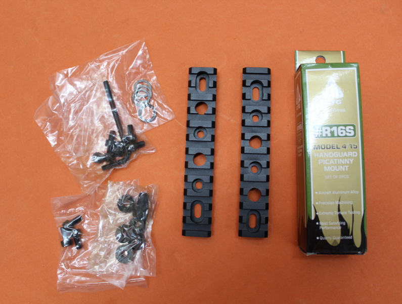 AR-15: Handguard Picatinny Rail Set (MNT-HGR16S) UTG Deluxe Model 4/15, 2x Picatinnyrail 4,9" mit Buchse für QD Sling Slivel Push Button Deep Housing Riemenbügel/ incl. Standard Riemenöse, z.B. zur Zweibeinbefestigung.