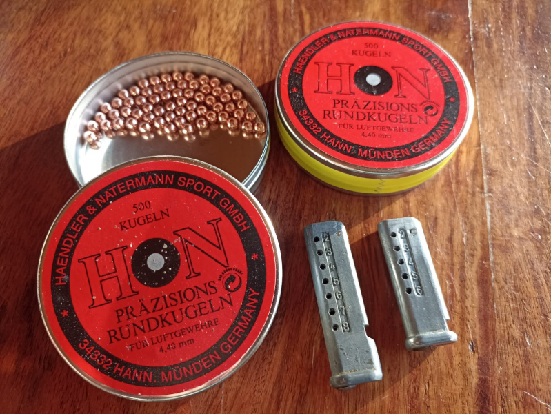 Zwei Magazine für die alten Haenel Luftgewehre, 6 und 8 Schuss.
