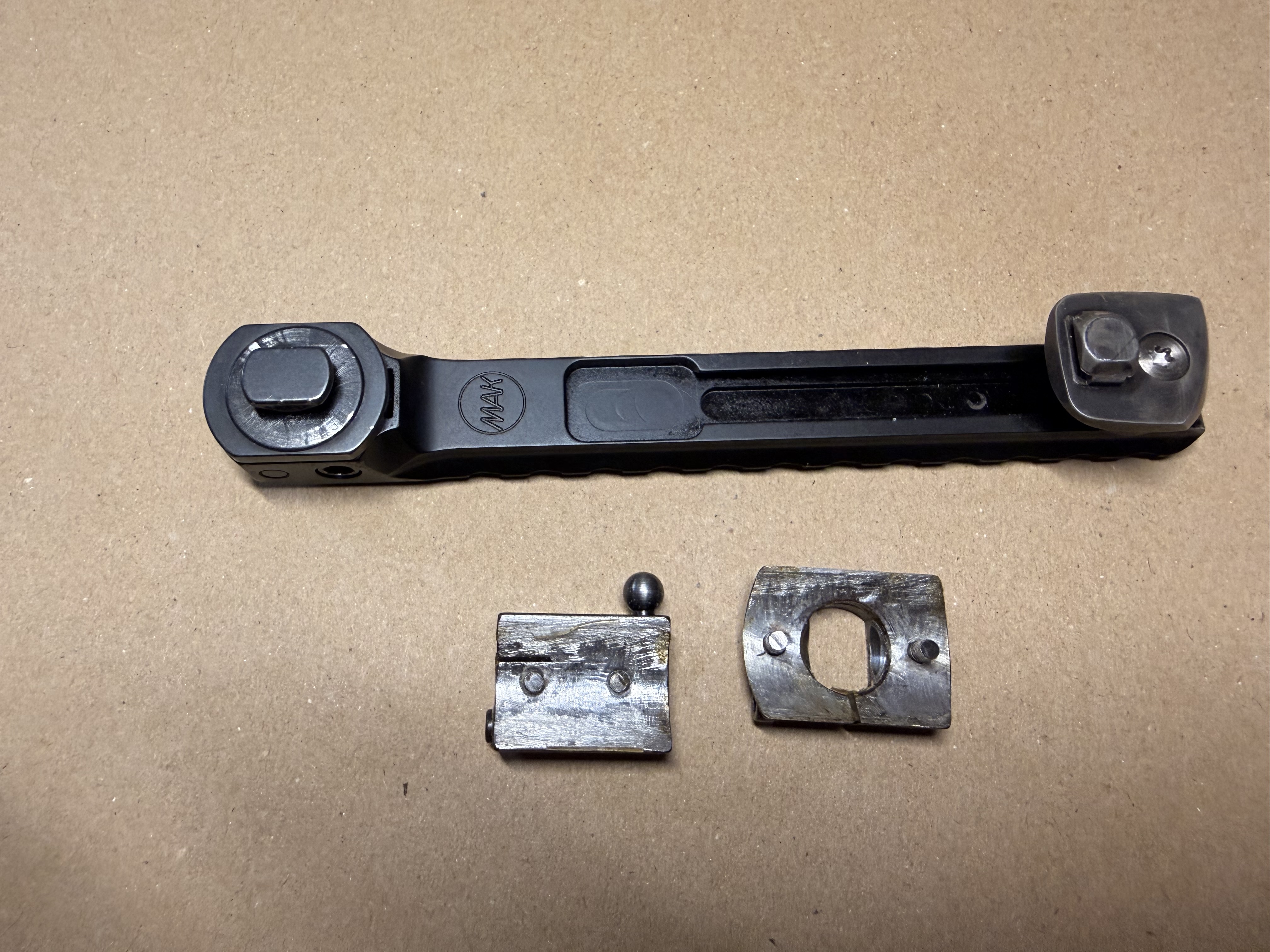 Gebrauchte Brückenschwenkmontage von MAK mit Unterteilen unbekannten Herstellers.