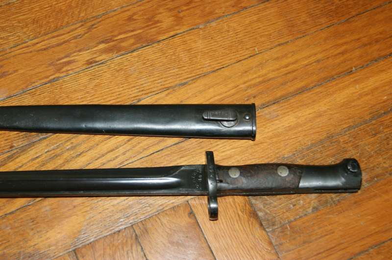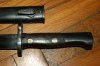 Biete hier ein mir unbekanntes Bayonett mit Scheide an, auf Schneide steht etwas in kyrillischer Beschriftung und 44,sehr guter Zustand, Länge 40cm.