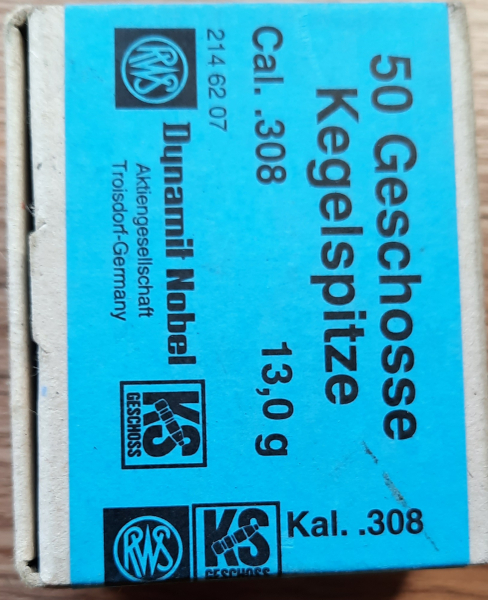 Verkaufe 50 RWS GESCHOSSE Kal. 308 respektive 7,62 mm KS 13g also sehr schwere Geschosse gut geeignet auch für 30-06